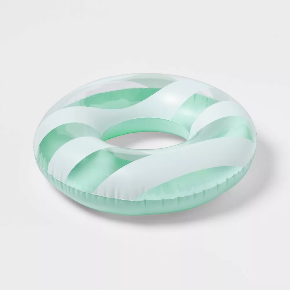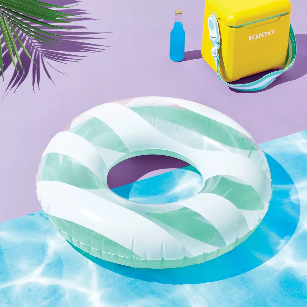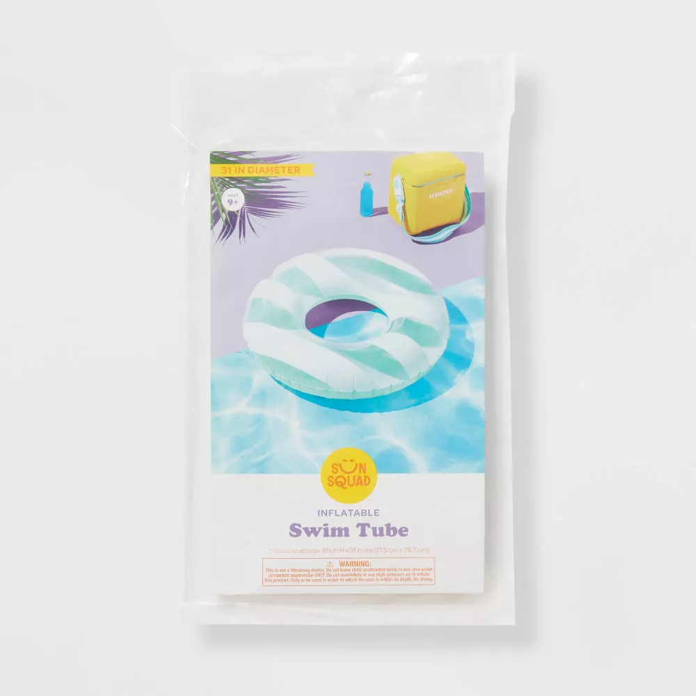 Get ready to soak up the sun with Cabana 31″ Tube – Sun Squad™. With a blue base and white stripes on top this swim tube is a go-to for sunny adventures. It has durable and puncture resistant materials with a single air chamber that makes it easy to inflate. This tube adds a splash of fun to all your summer escapades.