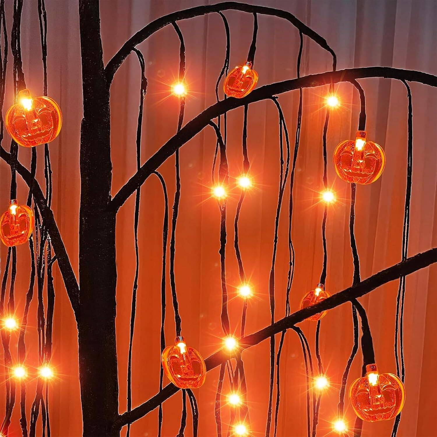• [ Total 108 Lights ] Sparkling powder covered on Halloween tree Twigs with 84 LED orange lights and 24 orange Jack O’ Lantern pumpkins. It will be shiny and dazzling whether on the bright or dim place and stay cool to touch after long time use. Twigs are lightweight and bendable.