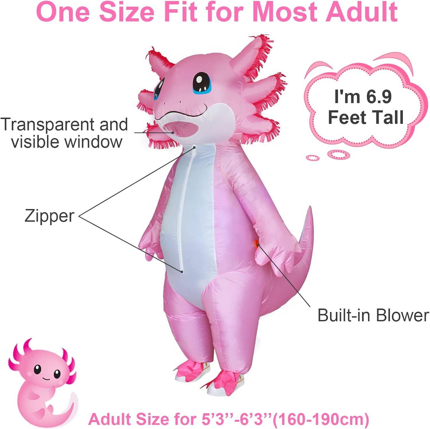 • ?【Party in comfort】The pink axolotl inflatable costume is very comfortable so you can party all night long! It leaves you a lot of space so you haven’t to restrict yourself in tight and uncomfortable costumes and it’s ventilated so you won’t get sweaty.