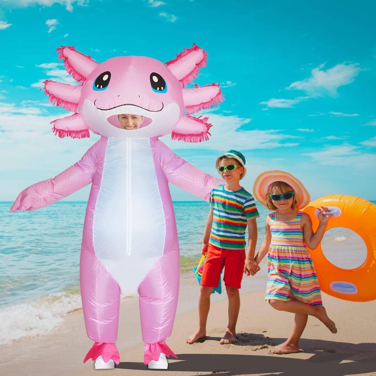 PARTY IN COMFORT with this inflatable axolotl costume: