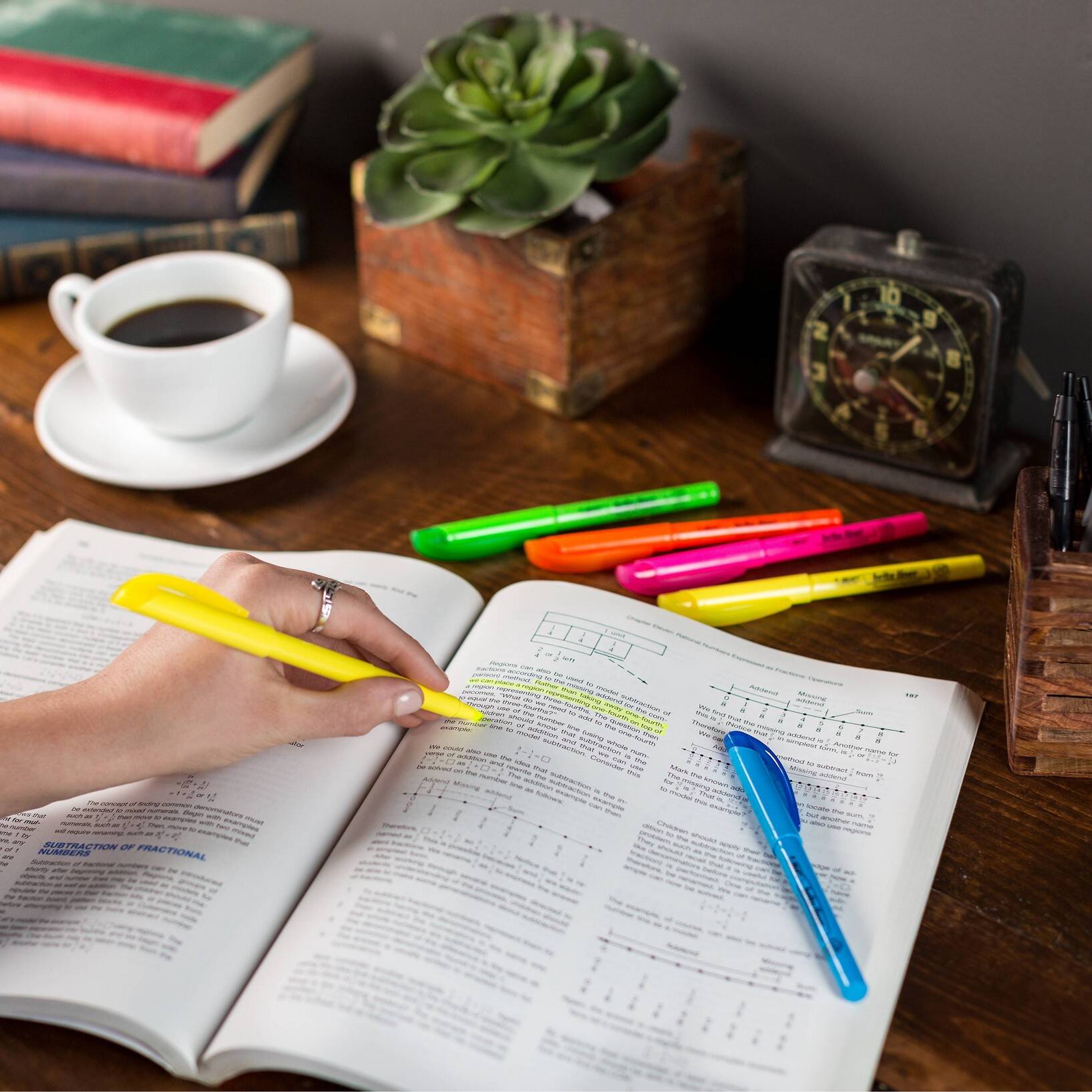 Includes 5 BIC Highlighters in an assortment of vibrantly bright, fluorescent ink colors