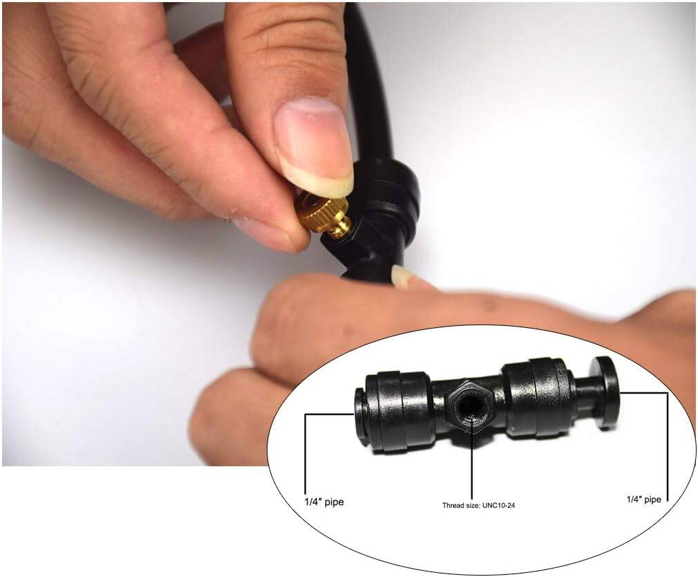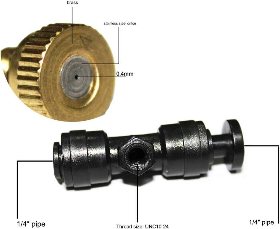 - Parameters: suitable for 1/4 “pipe, sliding lock is pushed quickly, thread size is UNC 10-24, diameter is 0.016” (0.4mm); stainless steel hole, each nozzle is equipped with self sealing O ring;
