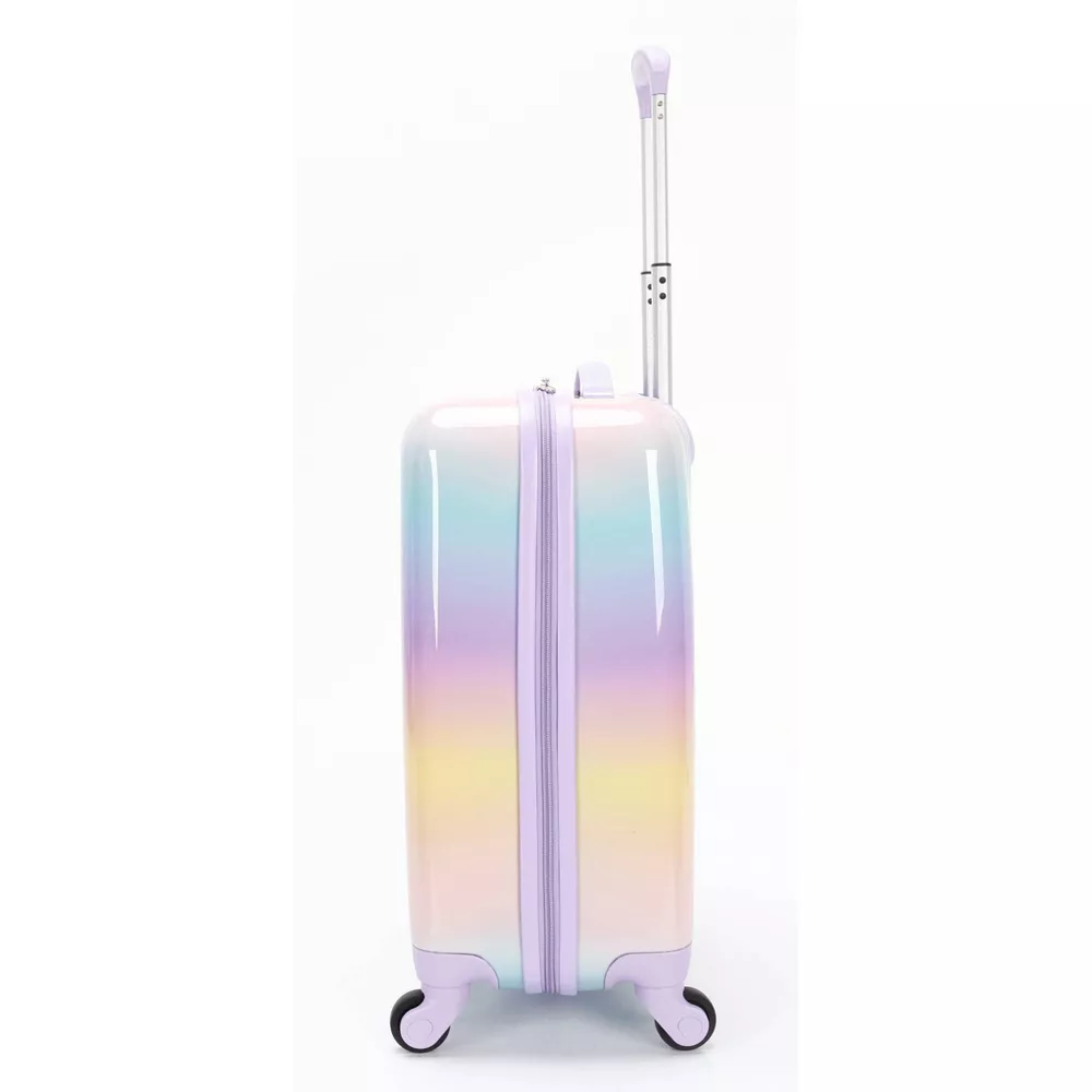 Whether your child is traveling for the first time or is a frequent flyer, the Ombre Hardside Spinner Luggage from Crckt will keep them traveling in style and show off their unique personality. This 21″ ABS luggage features 4 recessed spinner wheels, double zipper closure, telescoping handle and straps to keep everything neatly organized. Make traveling fun and easy with a standout piece of luggage!
