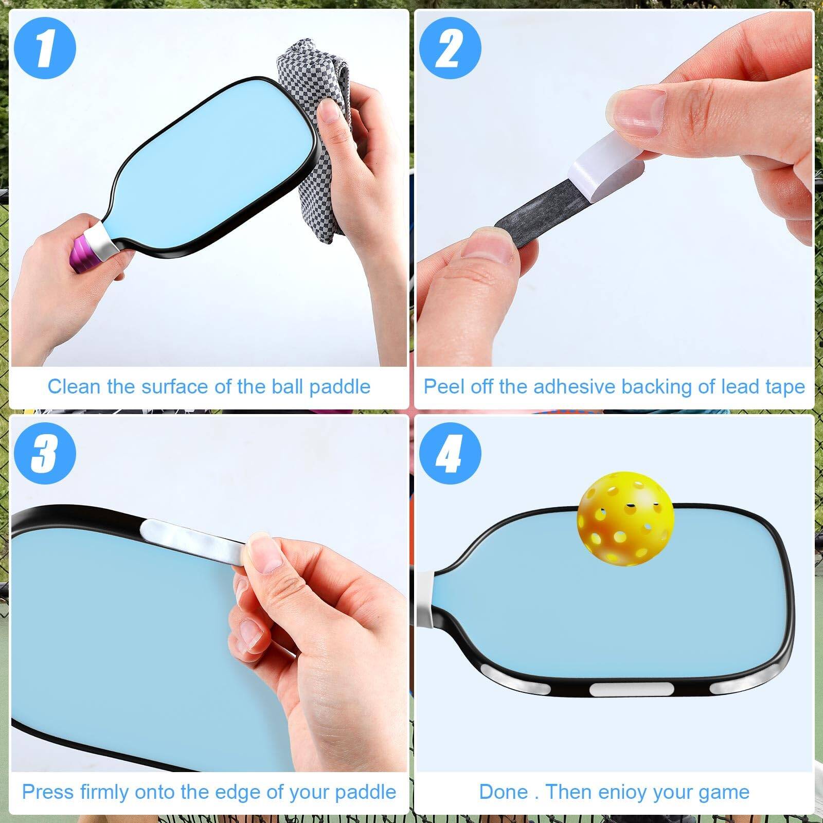 - Easy to Use: just peel off the backing paper of the tape compatible with Pickleball paddle, and paste the tape to where you want to add weight, therefore you can change the balance of the racket