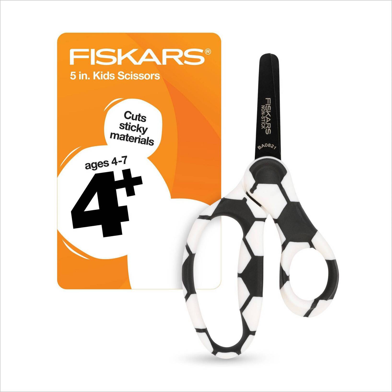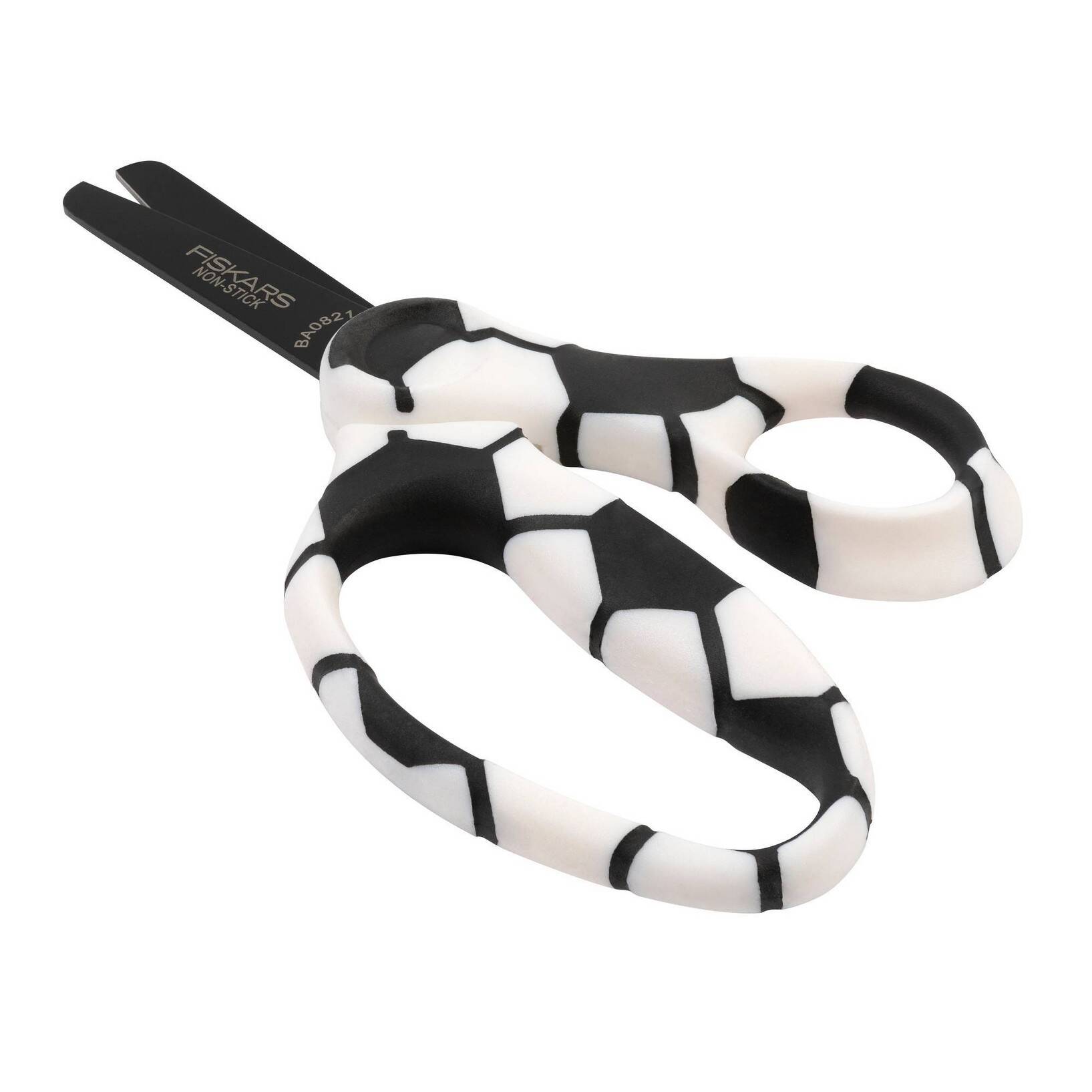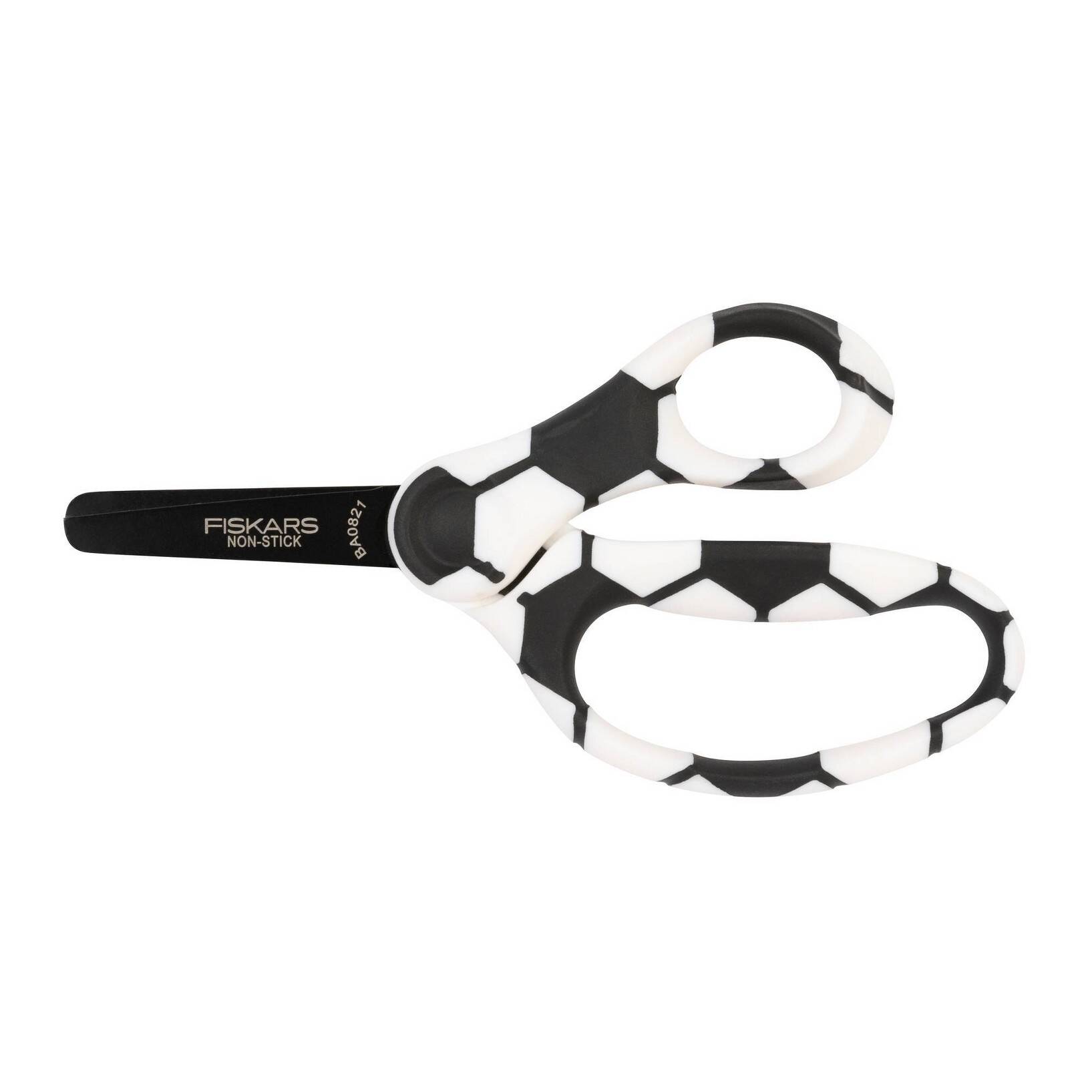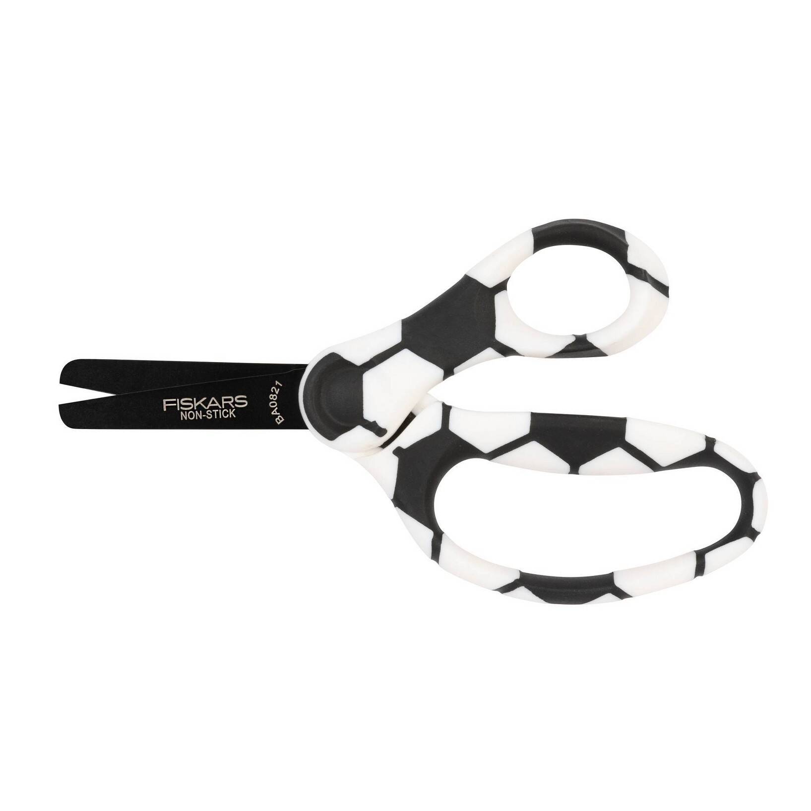 [This review was collected as part of a promotion.] I absolutely love Fiskars 5 inch MVP Non-stick Blunt-tip Kids Scissors. Fiskar contoured handles are very comfortable. They can accommodate left or right handed children. My child loves soccer and so the soccer design is perfect for him. The blunt tip makes the scissors safer and the non-stick blades make it easy to cut sticky materials. Fiskar scissors are recommended by teachers and the only brand I buy. They are highly quality and last forever. I highly recommend Fiskar blunt tip scissors!