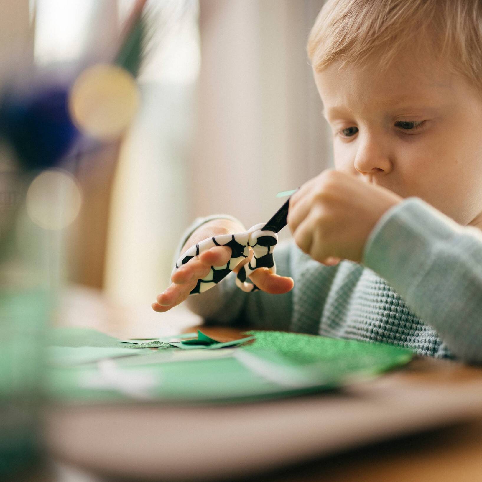 The larger finger loop and ergonomic thumb loop provide a natural, more comfortable fit for kids’ fingers. An optimized opening angle helps kids open the blades without losing their grip for improved control. Additionally, the scissors handle is built to be in line with the blades to allow for better precision while cutting paper and other art materials in the air.