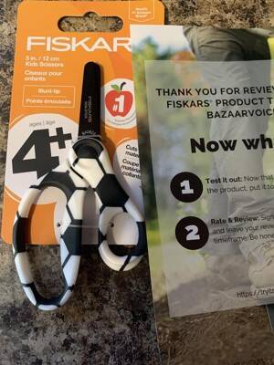 [This review was collected as part of a promotion.] Overall I was very satisfied with these Fiskars MVP soccer ball print Non-stick blunt-tip scissors. They are very helpful with my some and he seems to really like them. I like that safety of know they are blunt tip.