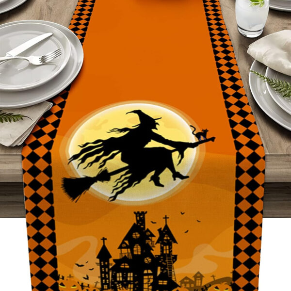 Halloween Flying Witch Cotten Linen Table Runner 13x108inch,...