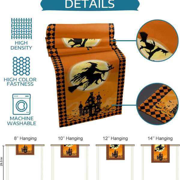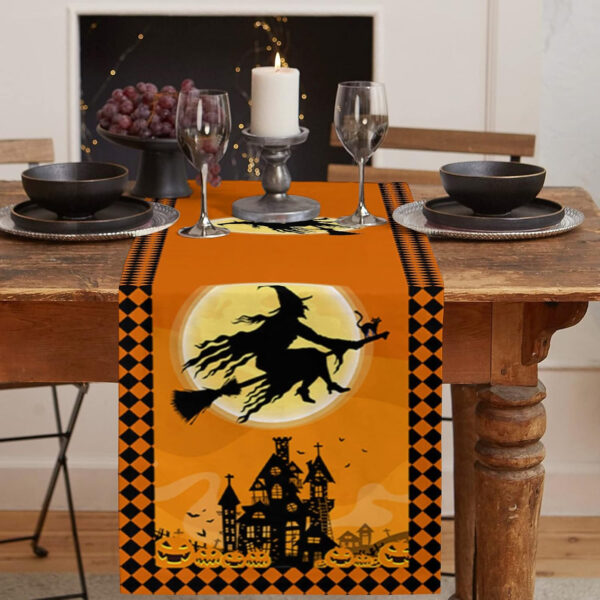 ?【Create a Halloween Eve Party】:The dining table runner for party, great to match with any tableware, dinnerware, napkins, placemats, tablecloth and other halloween home decor. Eg:spooky,pumpkin,lantern,ghost,castle,broom,carving jack-o-lanterns,spider web