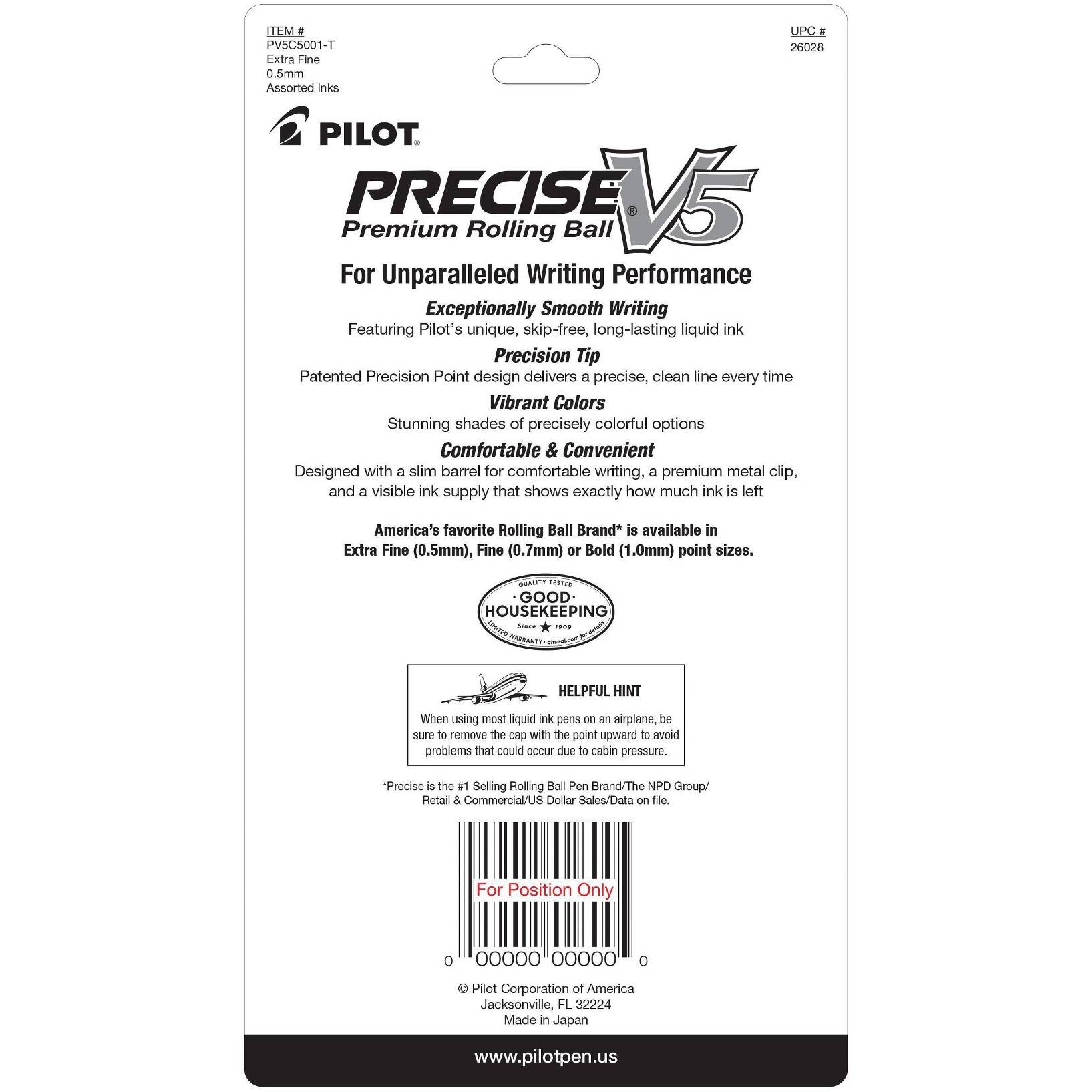 Pilot 5ct Precise V5 Rolling Ball Pens Extra Fine Point 0.5m...