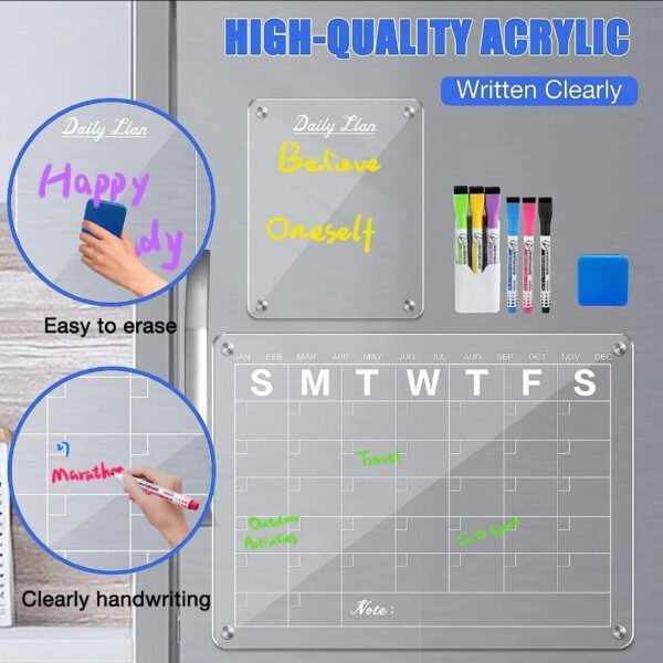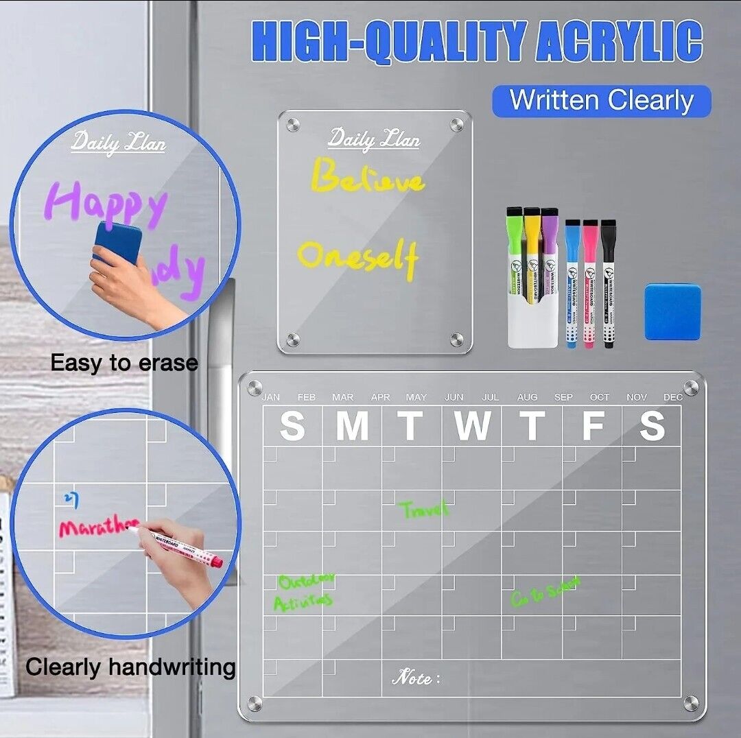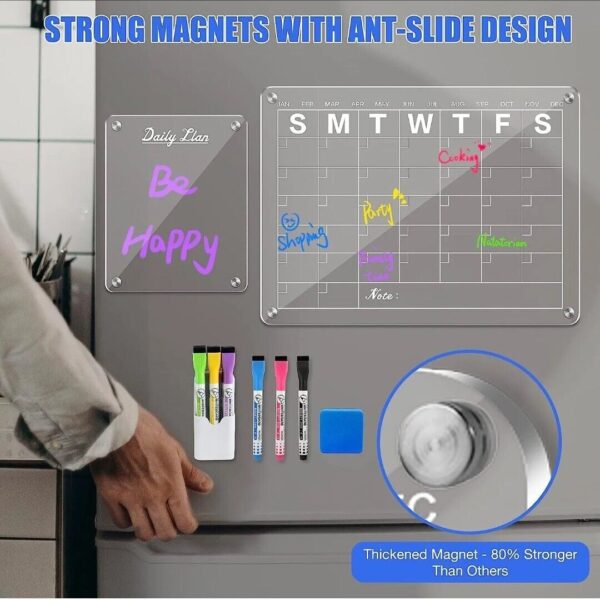 Premium Quality Acrylic: Experience the luxury of our 2 sets of monthly and weekly calendar for fridge. Crafted from extra-strong, high-density acrylic, our acrylic magnetic dry erase boards are a masterpiece of durability. Unlike other alternatives prone to cracks, our fridge dry …