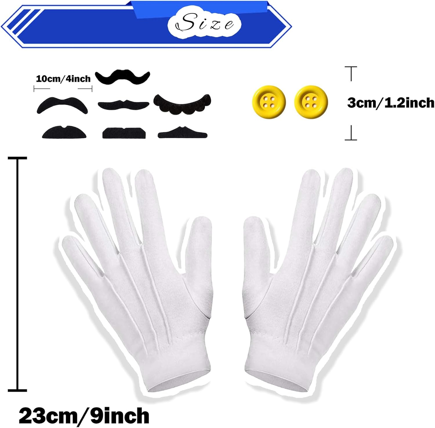 - Accessories Include: Character hat, self-adhesive fake beard, one pair of white gloves, large buttons, each accessory is a necessary prop for cosplaying M.