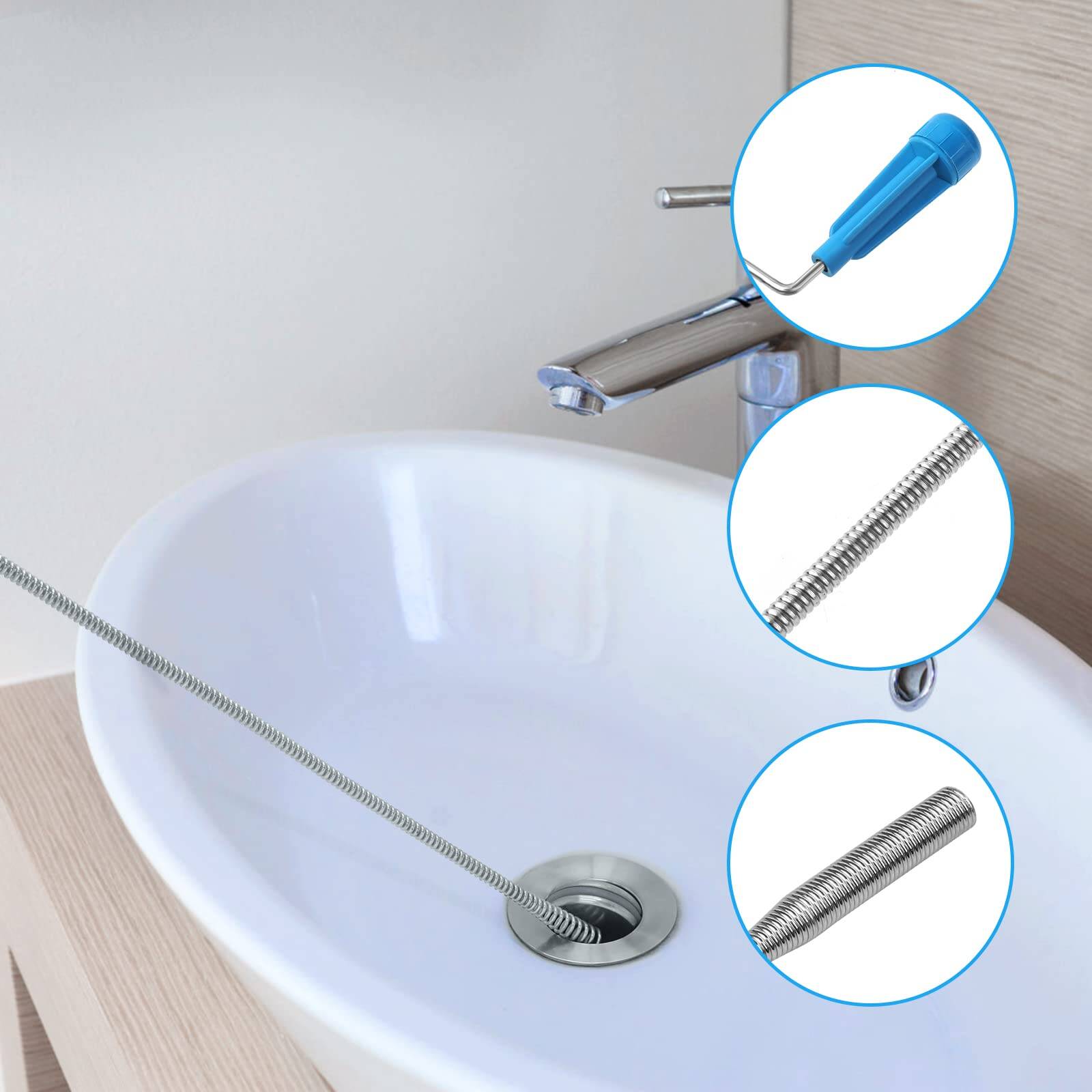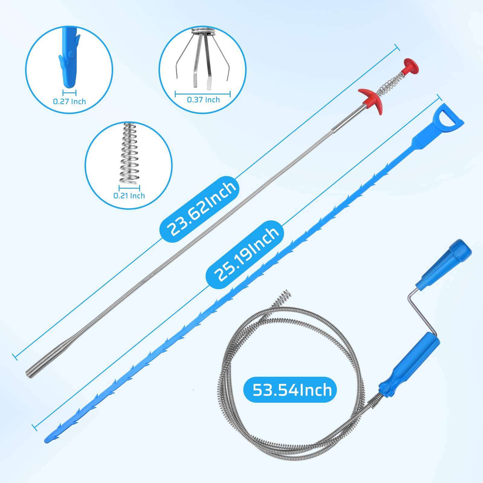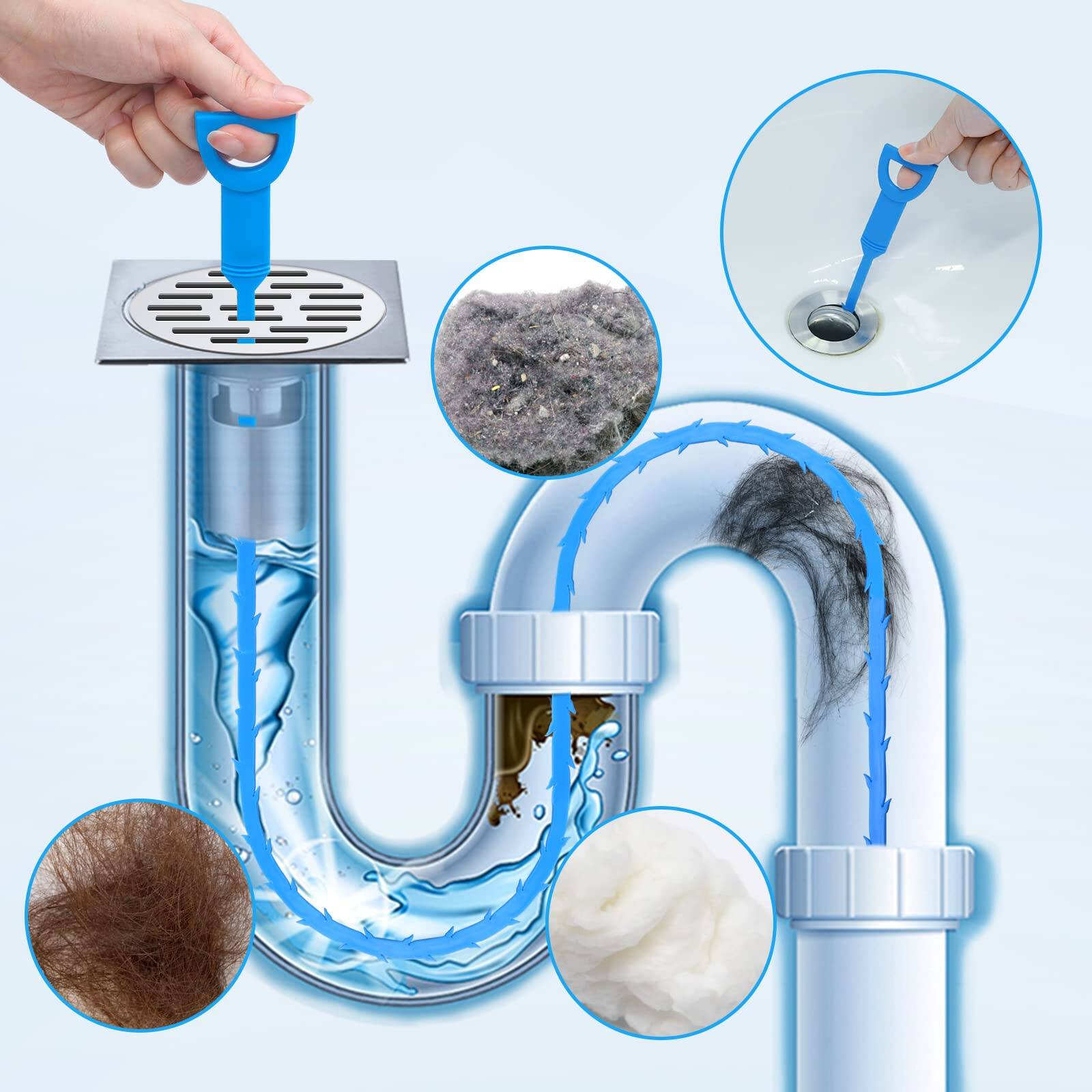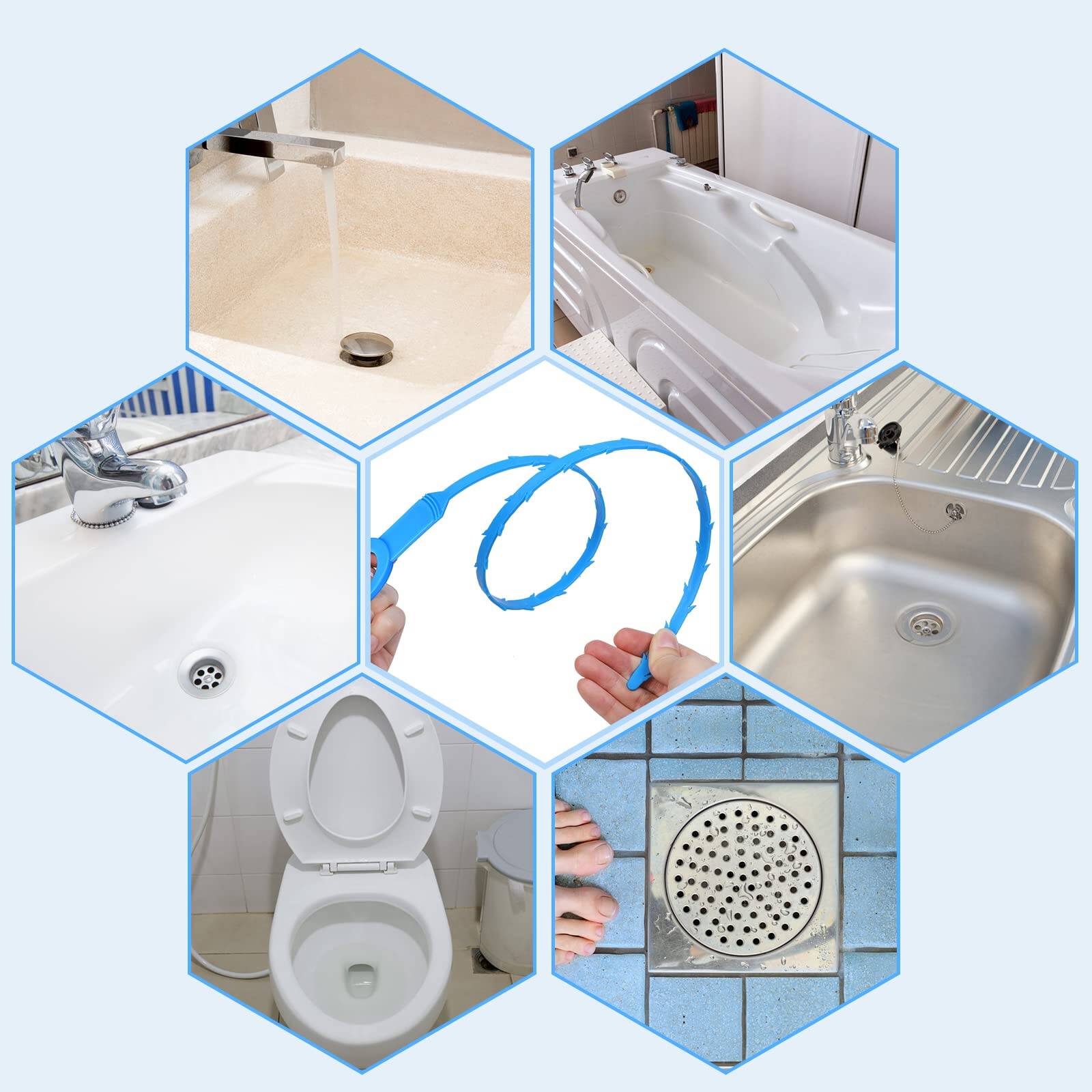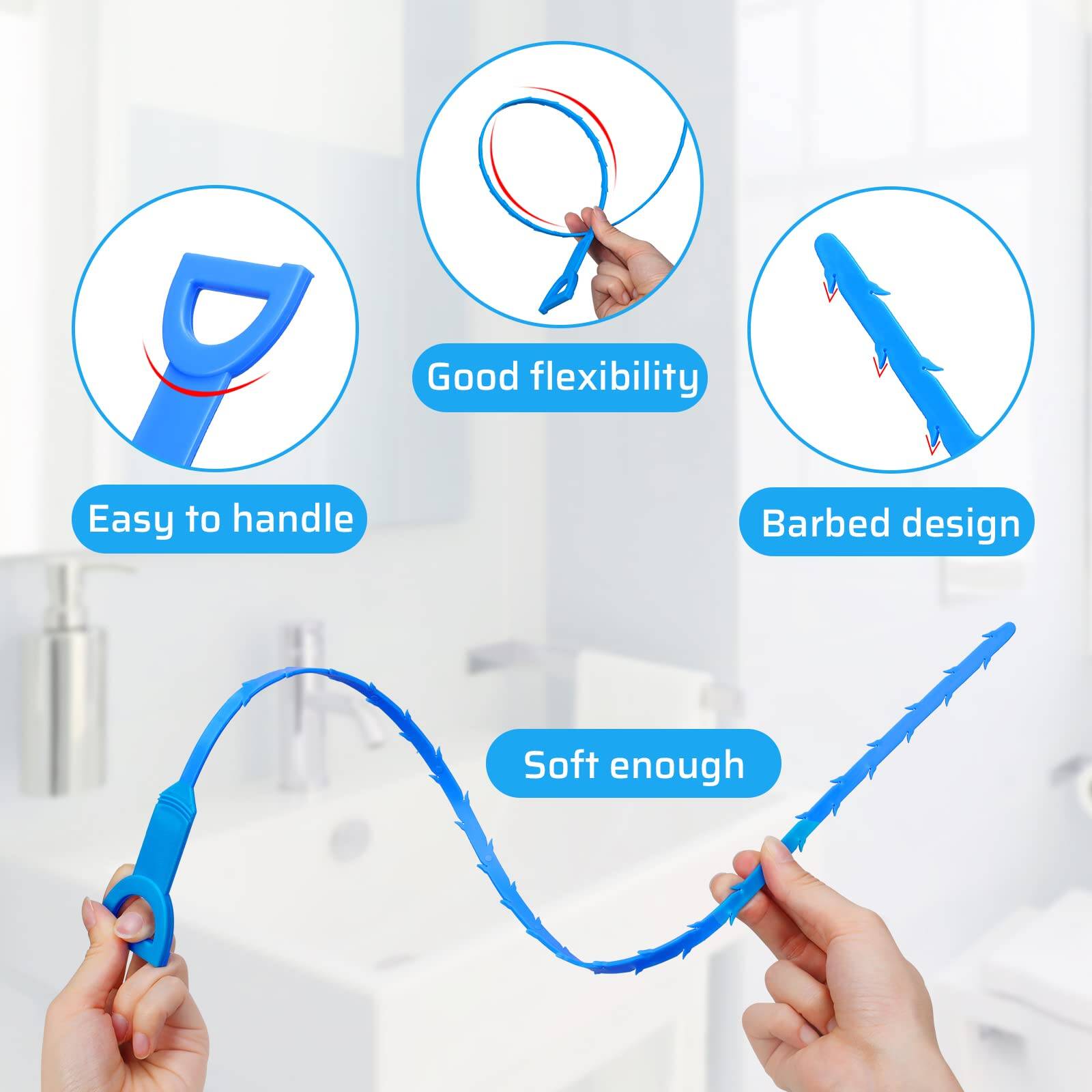 - Meet Different Needs – Hair drain cleaner tool kit includes five blue drain-snake, a blue stainless steel drain cleaner and a blue drain cleaning brush, to meet diverse needs. Blue drain-snake length of 24 inch, width of 0.48 inch, enough to go deep into the sink pipe can remove difficult to clean bent residue, ABS plastic material soft and hard, easy to bend tucked into the pipe.