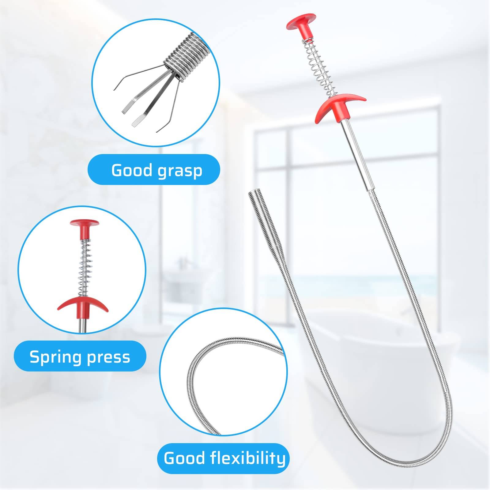 - Good Toughness – The stainless steel drain cleaner is about 24 inch long, ABS Plastic + stainless steel material has good toughness, has a claw to hold on to hair and other clogs, hooks out more residue, easily removes obstructions and unclogs clogged pipes.