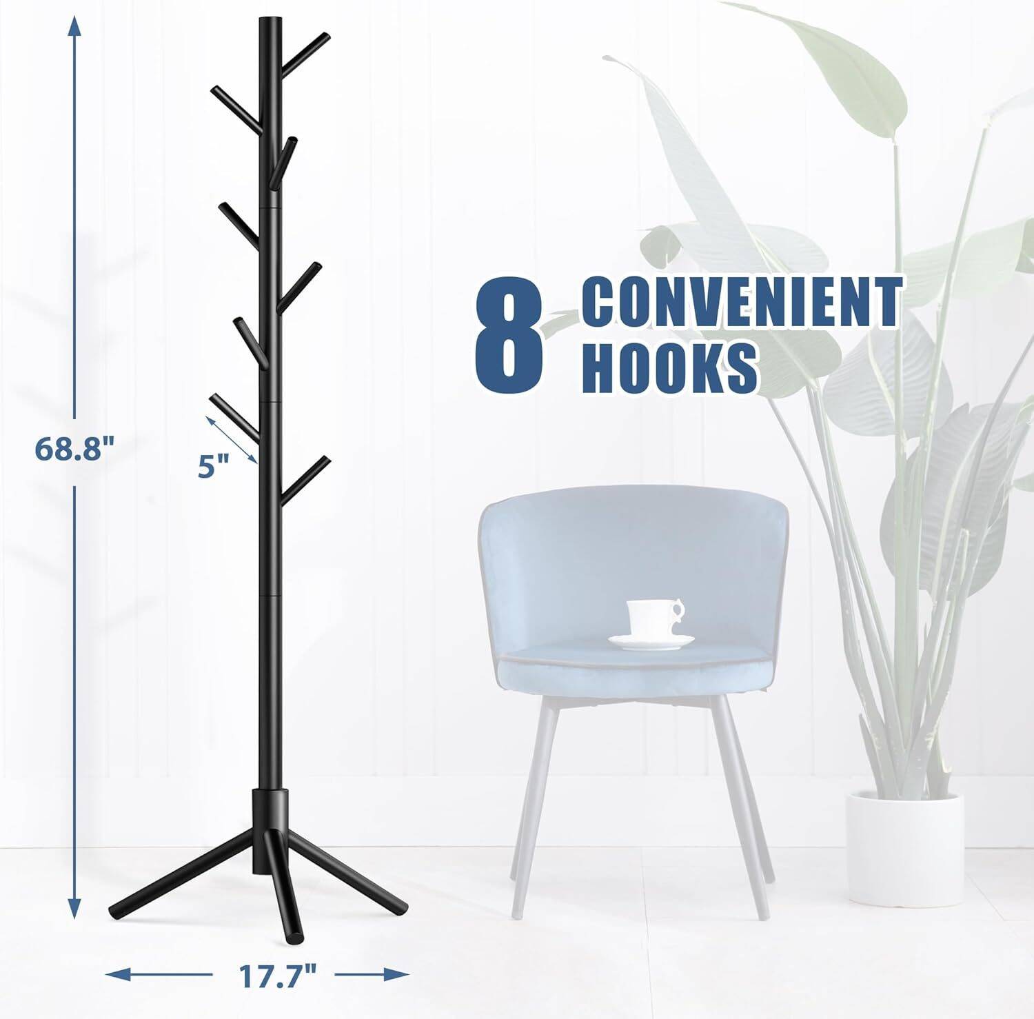 Wooden Coat Rack Stand with 8 Hooks New Zealand Pine Adjustable Coat Standing Tree Easy Assembly for Coats, Hats, Scarves and Handbags for Entryway, Hallway, Bedroom, OfficeWooden Coat Rack Stand with 8 Hooks New Zealand Pine Adjusta...